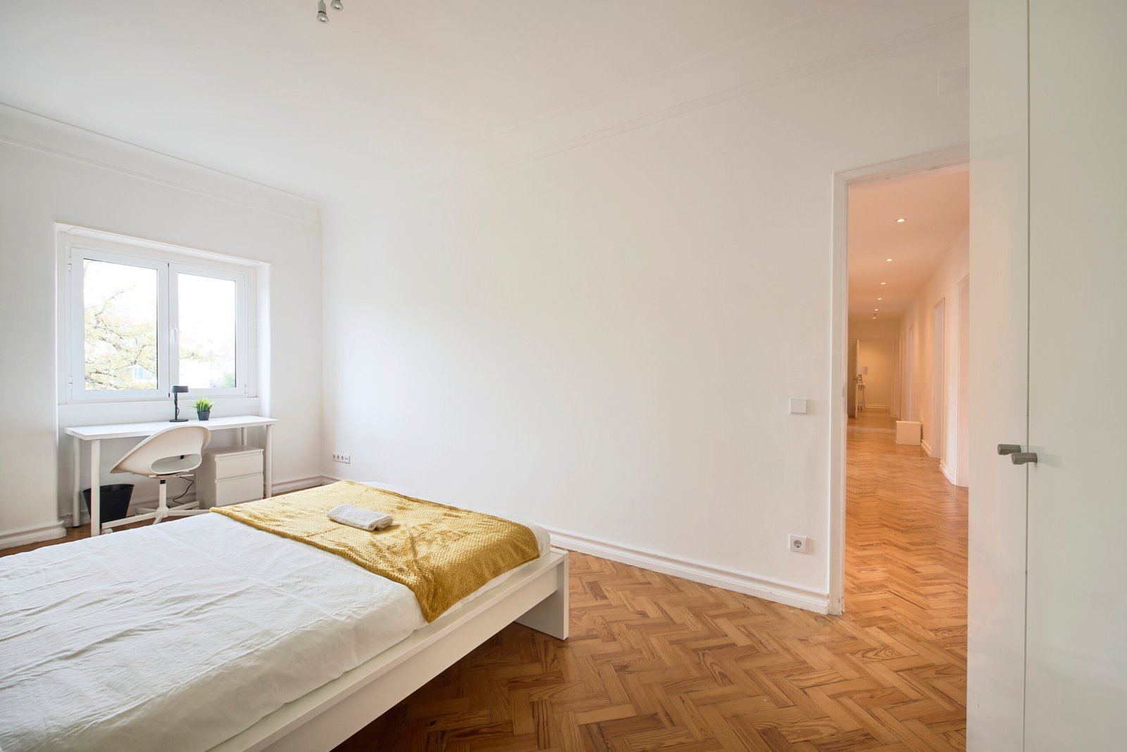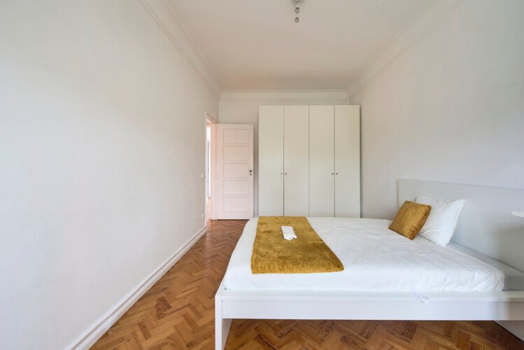Beautiful double room in Alvalade. The flat is on the 2nd floor and the building has elevator. It`s a 9- room apartment with 4 bathrooms (one of them belongs to an ensuite room). It is located 1 min walking distance from Entrecampos metro station (yellow line) and train station. The bills (water, electricity, gas and wifi) are included in the price as well as cleaning.